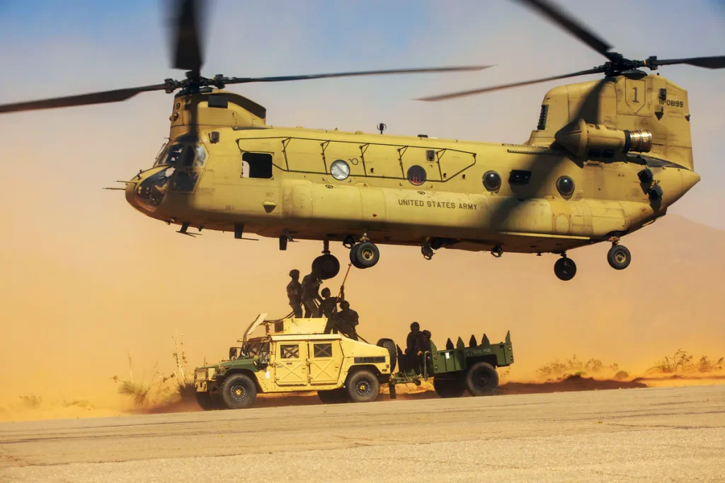 Chinook је један од основних тешких транспортних хеликоптера америчке војске, намењен превозу војника, опреме, муниције и логистичких средстава широм ратишта. Оштећење кокпита и предњег ротора посебно је озбиљно, јер се у тим деловима налазе команде лета, авионика и конструктивни елементи кључни за безбедан рад летелице.
