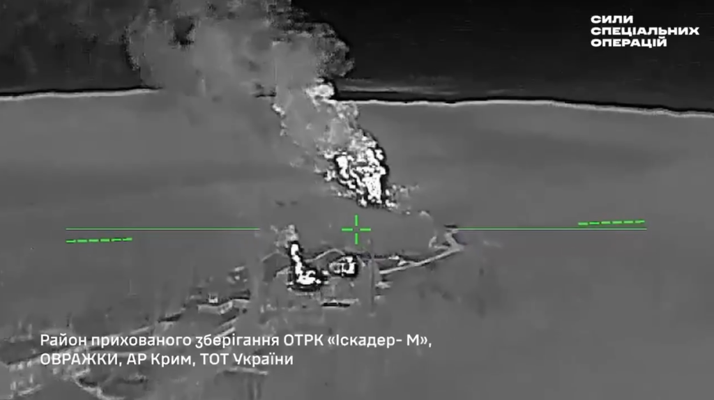 Украјинске Снаге за специјалне операције извеле су директан напад у ноћи 28. априла на базу за смештај тактичких ракетних система Искандер на Криму. Према наводима украјинске стране, мета се налазила на територији некадашње ракетне базе код села Овражки, око 40 километара источно од Симферопоља.